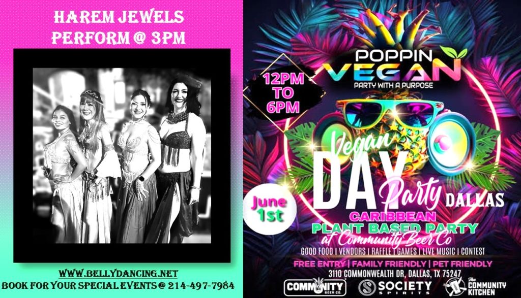 Shimmy with the Harem Jewels This Saturday @ the Plant Based Pary@ Community Beer and the Art Social Gallery Opening @ The Shops at Legacy, Plano, Texas